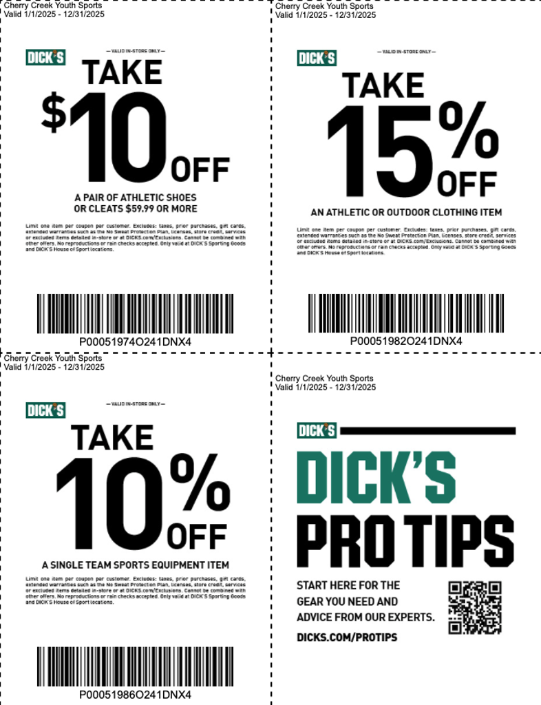 Our partner DICK’S Sporting Goods is offering all our members an exclusive discount of 20% off throughout the store! Be sure to grab all the things you will need for the upcoming season. To access exclusive savings, click the coupon linked above. The coupon is valid in-store only and must be shown at the register during checkout by clicking on the hyperlink.